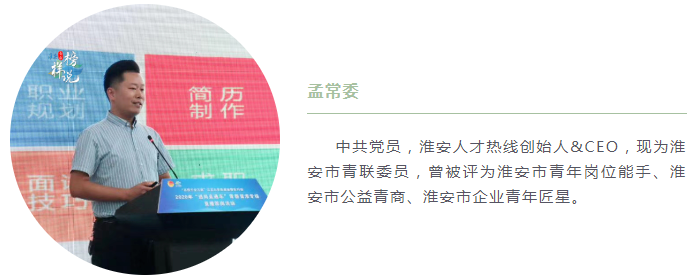 孟常委畢業(yè)于淮安的一所普通??茖W(xué)校,當(dāng)年和很多同學(xué)一樣,畢業(yè)后面臨著同樣一個(gè)問(wèn)題——就業(yè)難。他做過(guò)飯店服務(wù)員,當(dāng)過(guò)超市理貨工,在探尋自己職業(yè)方向上費(fèi)盡了心思、吃盡了苦頭。工作的時(shí)候他一直在思索,現(xiàn)在淮安每年那么多畢業(yè)生,畢業(yè)后第一個(gè)要面對(duì)的問(wèn)題就是就業(yè),如何能夠更好地幫助他們解決這一問(wèn)題?于是,孟常委有了創(chuàng)辦人才公司的念想。2012年,孟常委覺(jué)得時(shí)機(jī)成熟,迅速成立了淮安贏夏人才公司,致力于讓更多的人才“未出校門(mén)、不出家門(mén)”就能在淮安找到好工作、擁有好生活。公司創(chuàng)立之初,由于需要到一線拜訪企業(yè)、收集崗位信息,孟常委半年騎壞了2輛自行車,人也瘦了一圈。最終,自己的辛苦換來(lái)了事業(yè)上的甘甜,孟常委的人力資源事業(yè)新局面不斷被打開(kāi),這也更加堅(jiān)定了他要做好淮安一線“人才紅娘”的決心。
