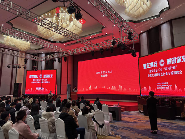 2023年3月4日上午,淮安市總工會隆重舉辦'就在淮安 職等你來'淮安市總工會“春風行動”暨重大項目重點企業(yè)專場招聘會。